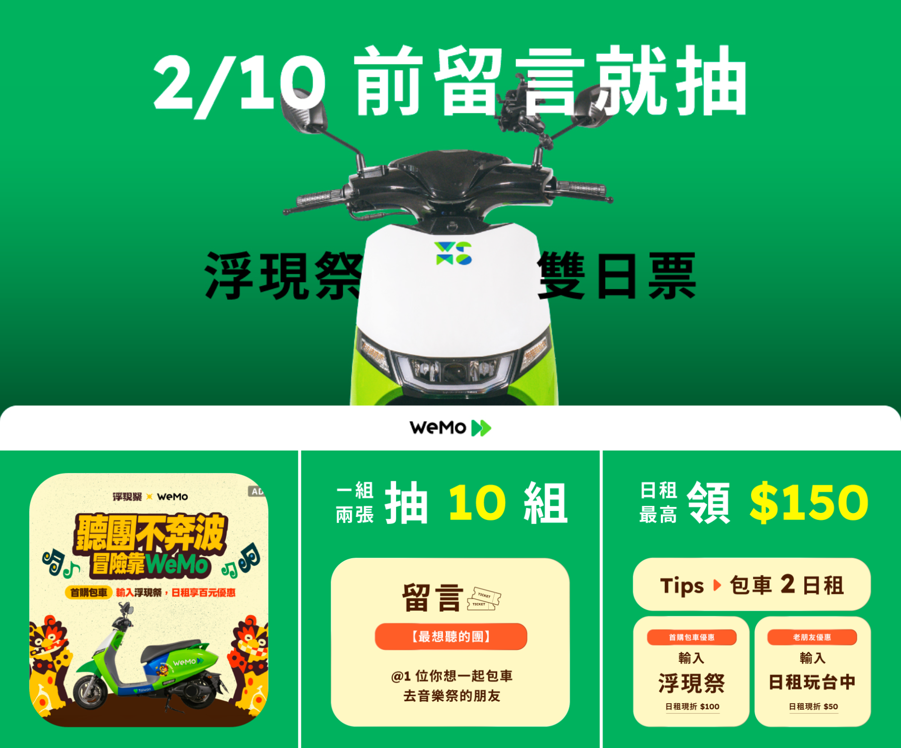 WeMo x 浮現祭🎵抽門票、日租包車去音樂祭限時優惠!台中聽團不怕沒車騎