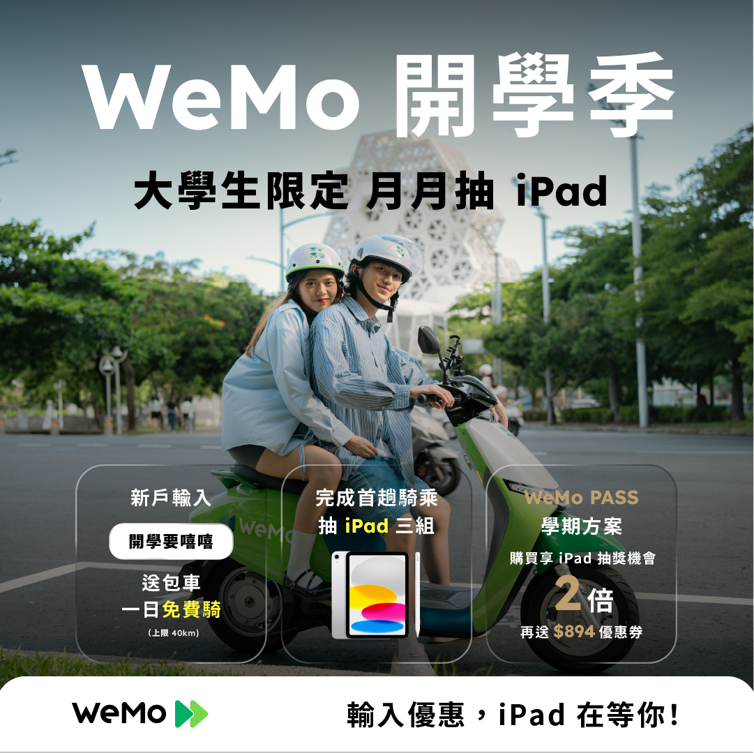 WeMo 開學季|開學送你免費騎,月月抽 iPad
